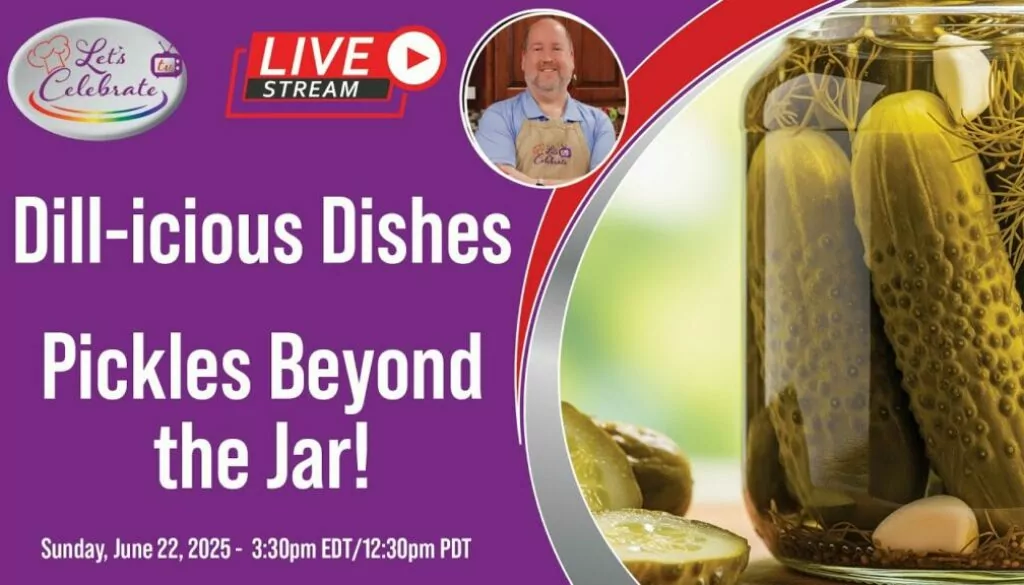 Sunday, June 22, 2025 – 3:30 pm Eastern US EDT – Has that lonely jar of pickles in your fridge been giving you the side-eye, silently begging for a purpose beyond being a burger garnish? Its cries have been heard! On “Dill-icious Dishes,” our live cooking show, we’re unlocking the full, glorious potential of your favorite brined veggie. From sophisticated to silly, we’re proving that pickles are the culinary chameleons you never knew you needed. Tell us in chat, what is your favorite pickle and what do you use it for besides burgers!